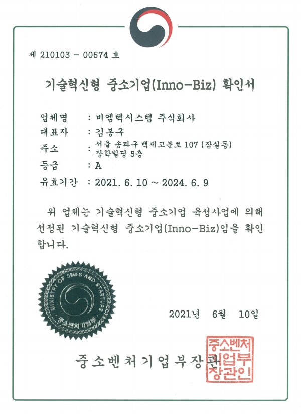 Obtained a certificate of Technology innovation (Inno-Biz) SMEs