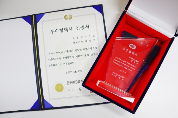 비엠텍시스템(주)가 2022년 한전KDN의 우수협력사로 선정되었습니다.