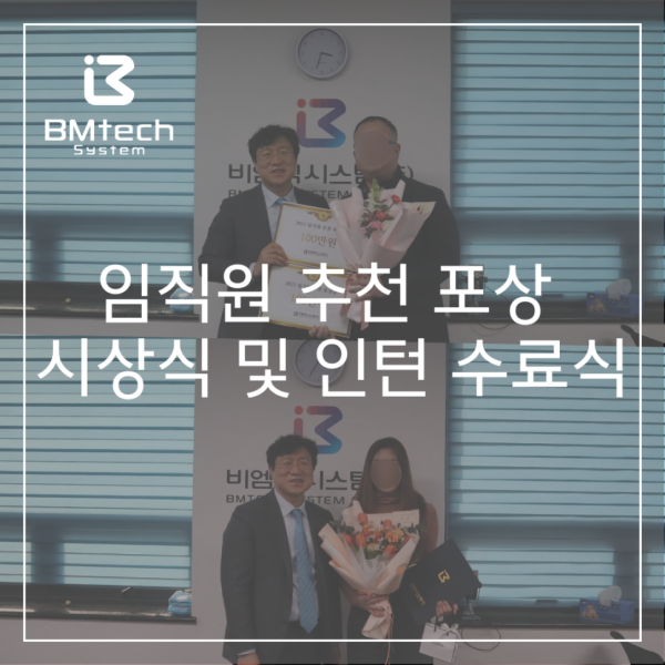 2월 15일 (수), 비엠텍시스템에서 임직원 추천 포상 시상식 및 인턴십 수료식을 진행하였습니다.