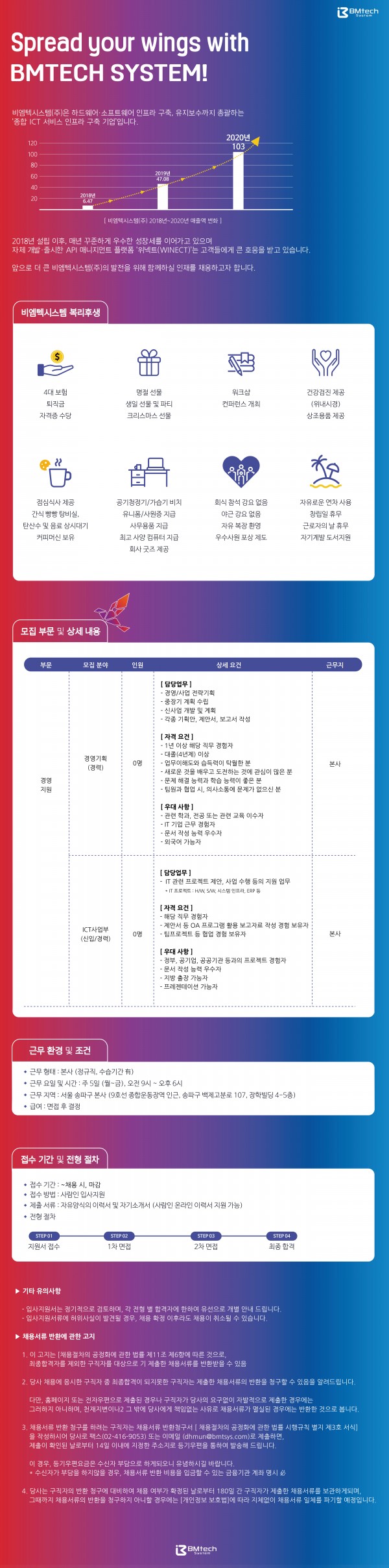 비엠텍시스템에서는 경영지원부문 관련하여 상시채용을 진행하고 있습니다.